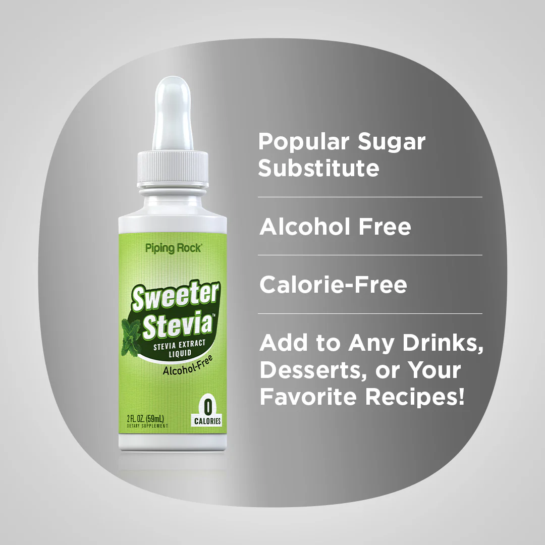 How is stevia both sweet and calorie-free? It naturally contains stevioside, a white, powdery non-caloric substance that is said to be 100-400 times sweeter than table sugar! A popular substitute for those with weight management routines, Piping Rock’s alcohol-free Liquid Sweeter Stevia adds sweetness to any dish without adding calories!
